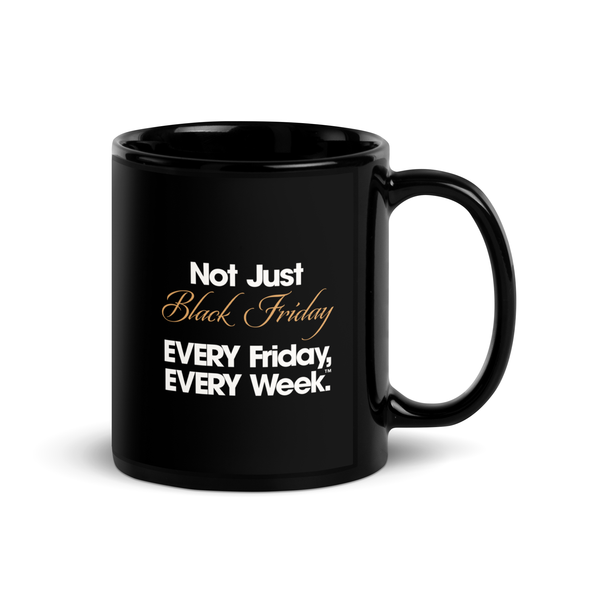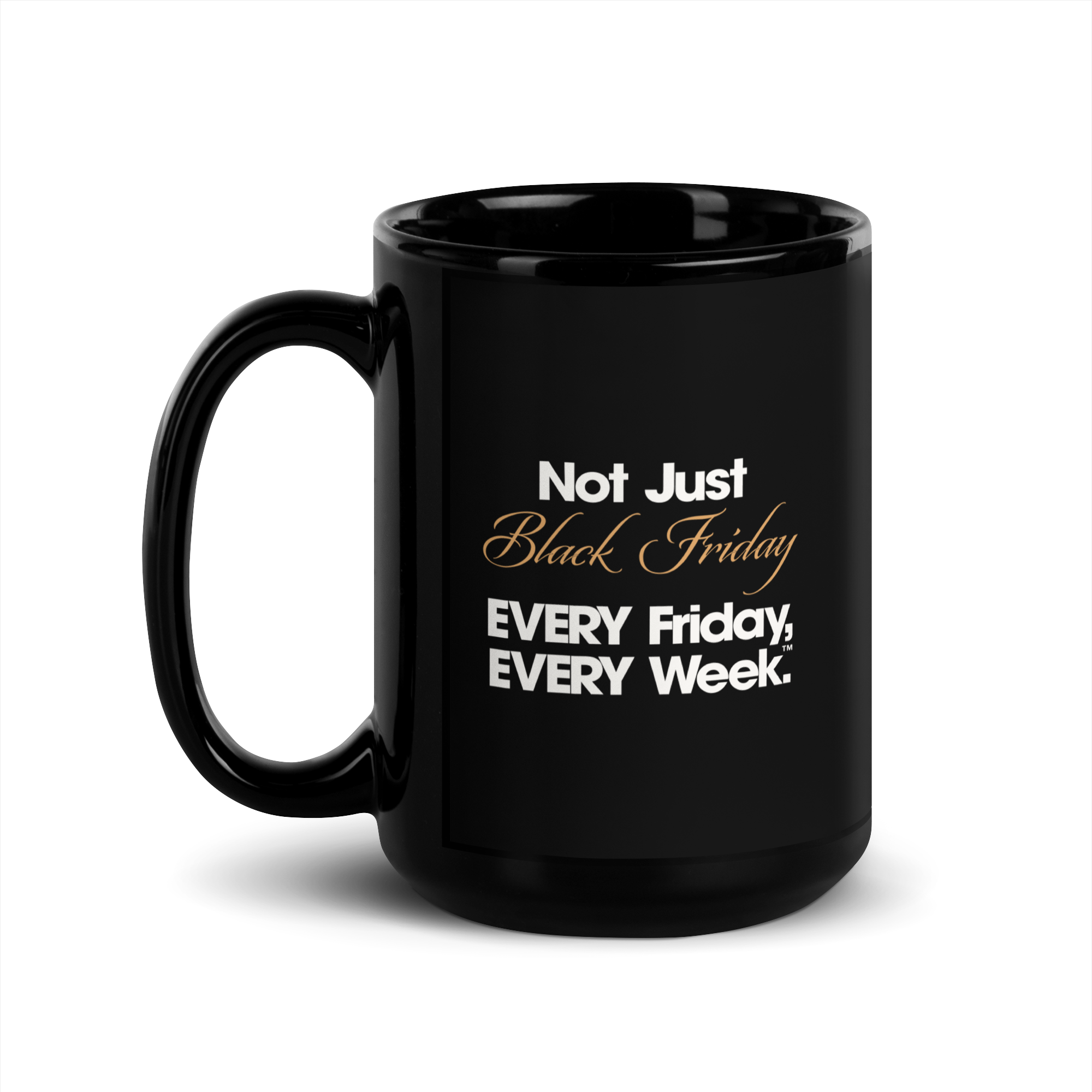 This ZITNALTA™ BUY BLACK Every Friday Black Glossy Mug cupboard essential is sturdy, sleek, and perfect for your morning java or afternoon tea.